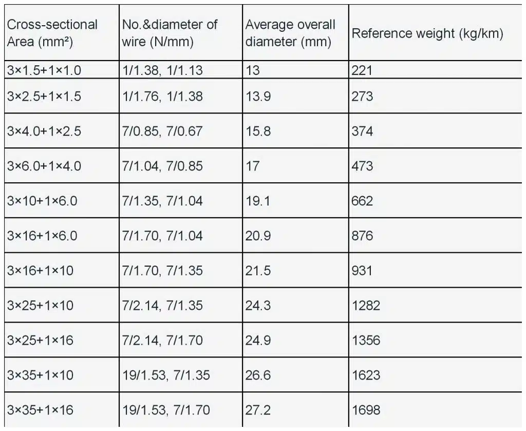 3core 1 grounding power Cable parameters
